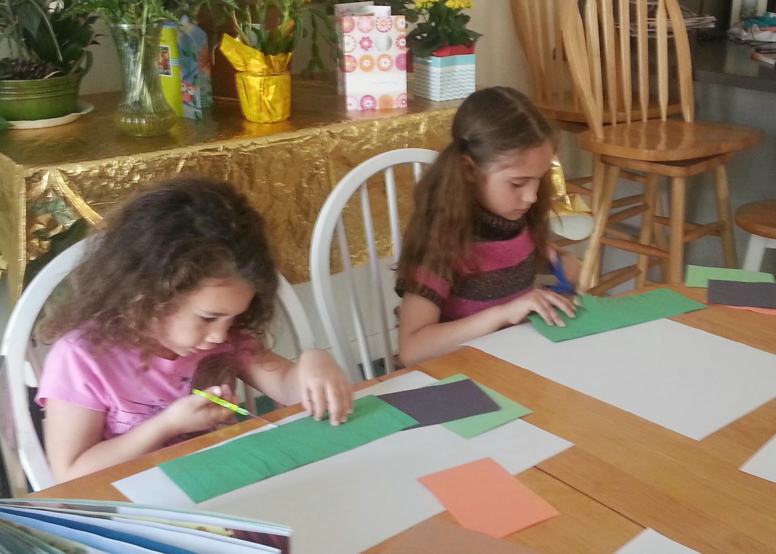 We learned about Henri Rousseau by reading books and using construction paper, glue and scissors to make a jungle scene.